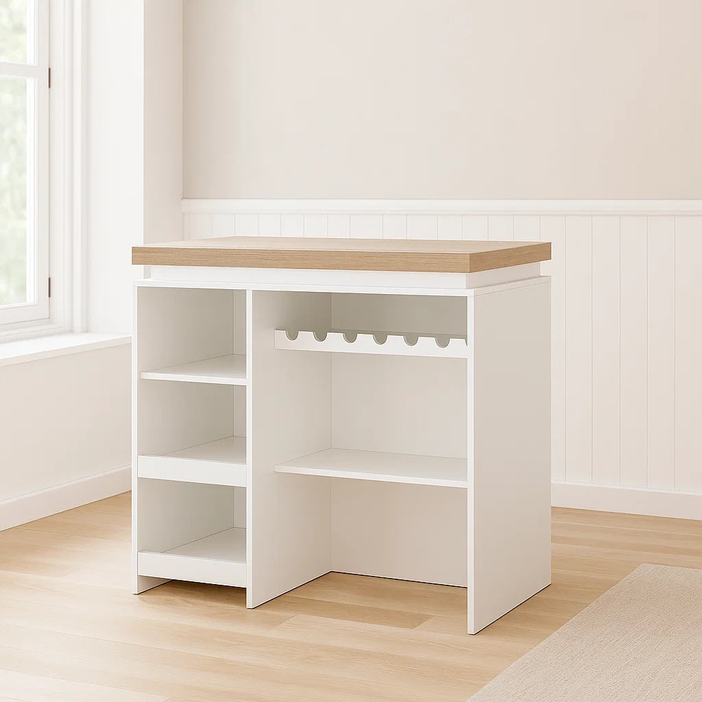 - Espace de rangement intégré avec étagères et porte-bouteilles